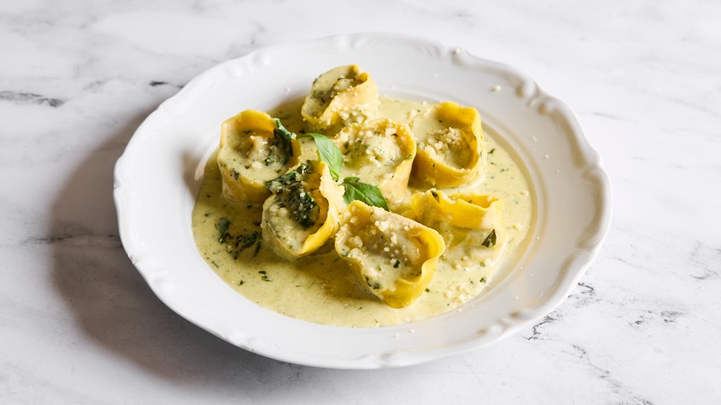 במילוי גבינת ריקוטה ותרד, שמנת בזיליקום ושמן זית