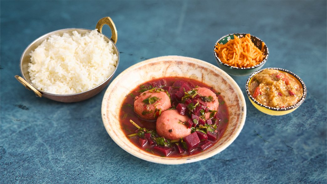3 יח׳ קובה סולת במילוי בשר בתוך מרק סלק חמצמץ | מוגש עם אורז לבן ושני סלטונים לבחירה