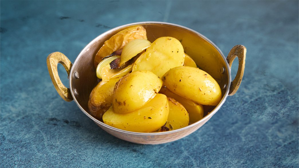 פלחי תפוח אדמה בשמן זית שום ותימין צלוי בתנור