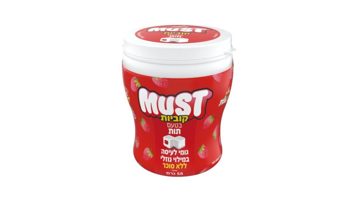מסטיק מאסט קוביות בטעם תות ללא סוכר 58 גרם