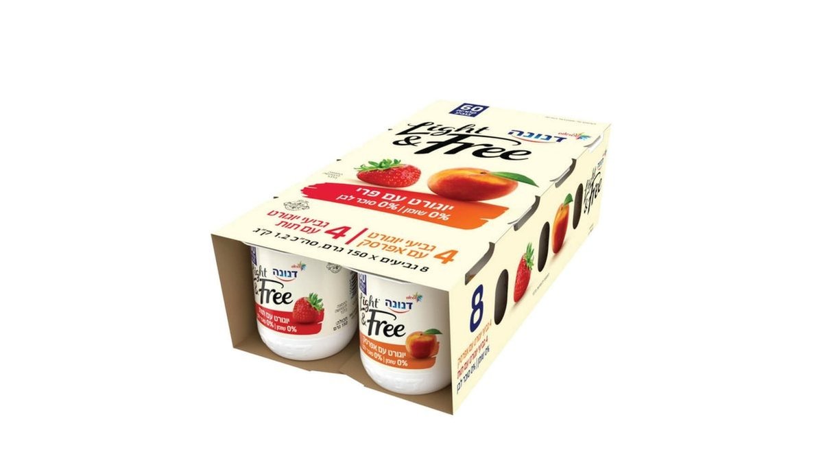 דנונה לייט פרי בטעם תות ואפרסק מארז - 8 יחידות