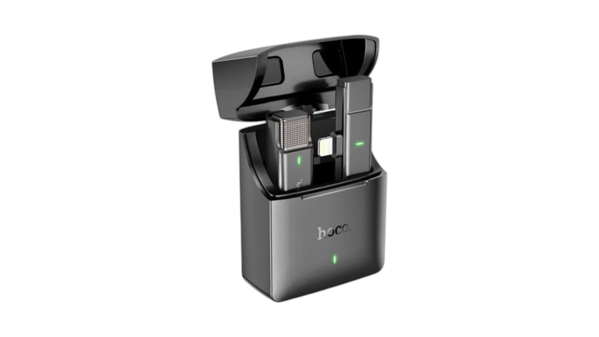 מיקרופון דש אלחוטי כפול לאנדרואיד ואייפון עם בית טעינה | Hoco L17