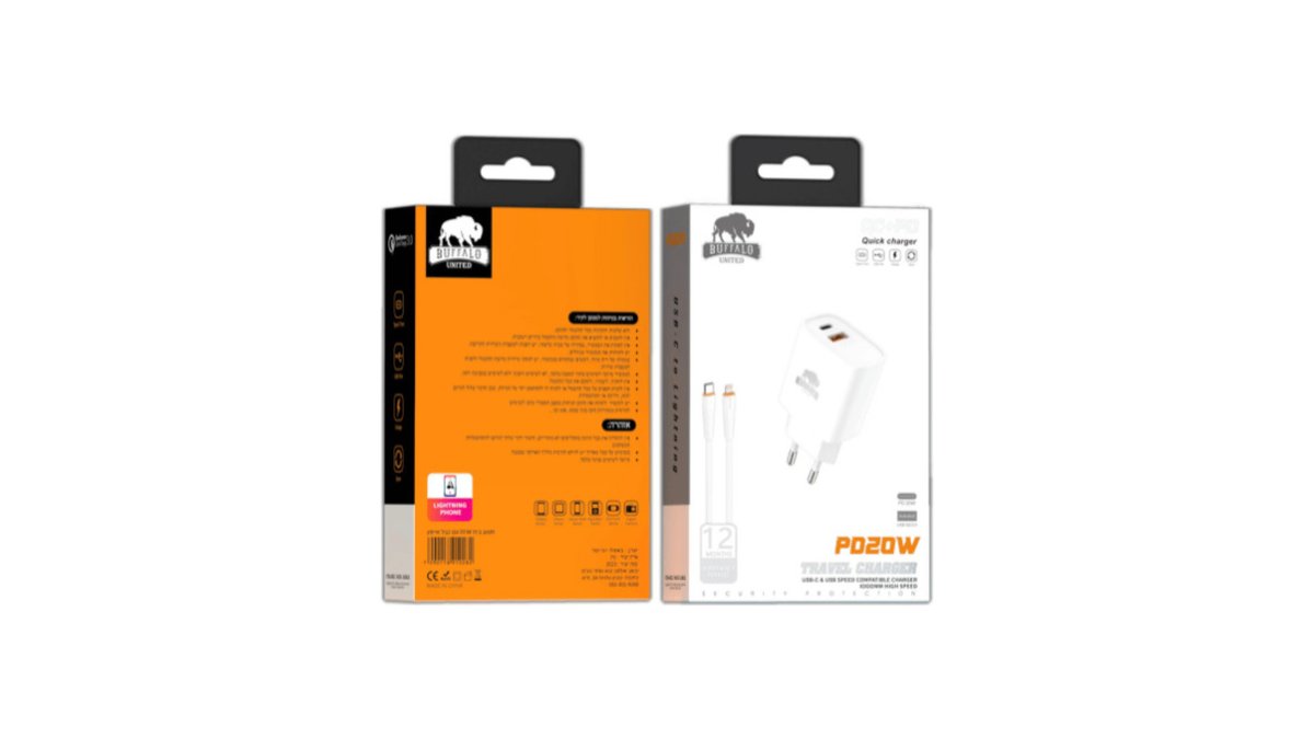 ראש מטען מהיר 20W מבית באפאלו כולל כבל USB-C ל-Lightning