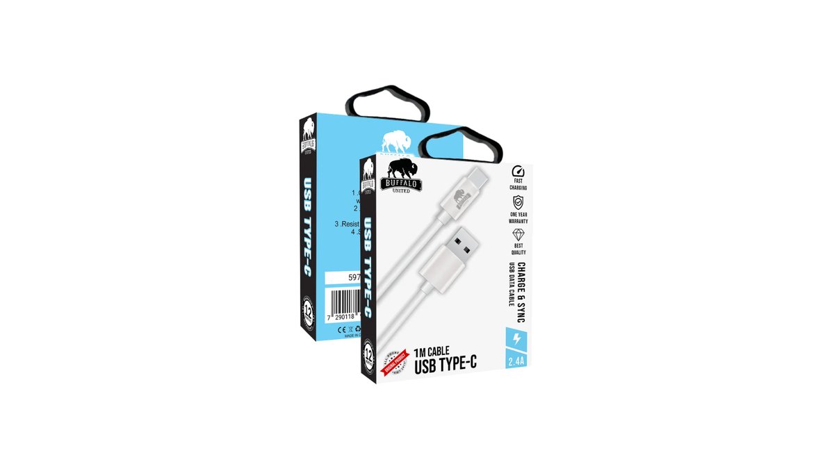 כבל USB TO Type-C באורך 2 מטר מבית באפאלו
