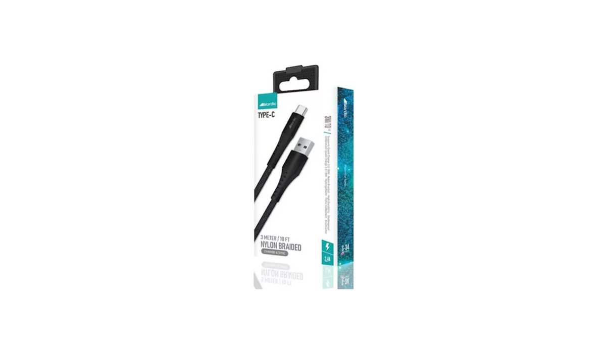 כבל באורך 3 מטר בהספק 18W USB-TYPE C מבית NORDIC
