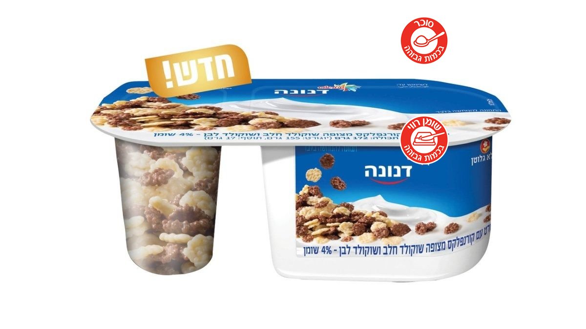 דנונה קראנצ' עם קורנפלקס מצופה שוקולד חלב ושוקולד לבן