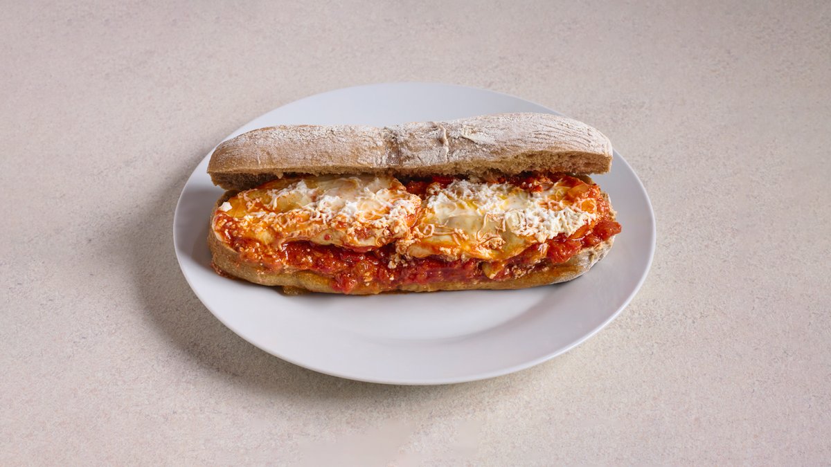 גבינה צהובה, רוטב פיצה, זיתים ועגבנייה, מוגש עם זיתים ורוטב אלף האיים