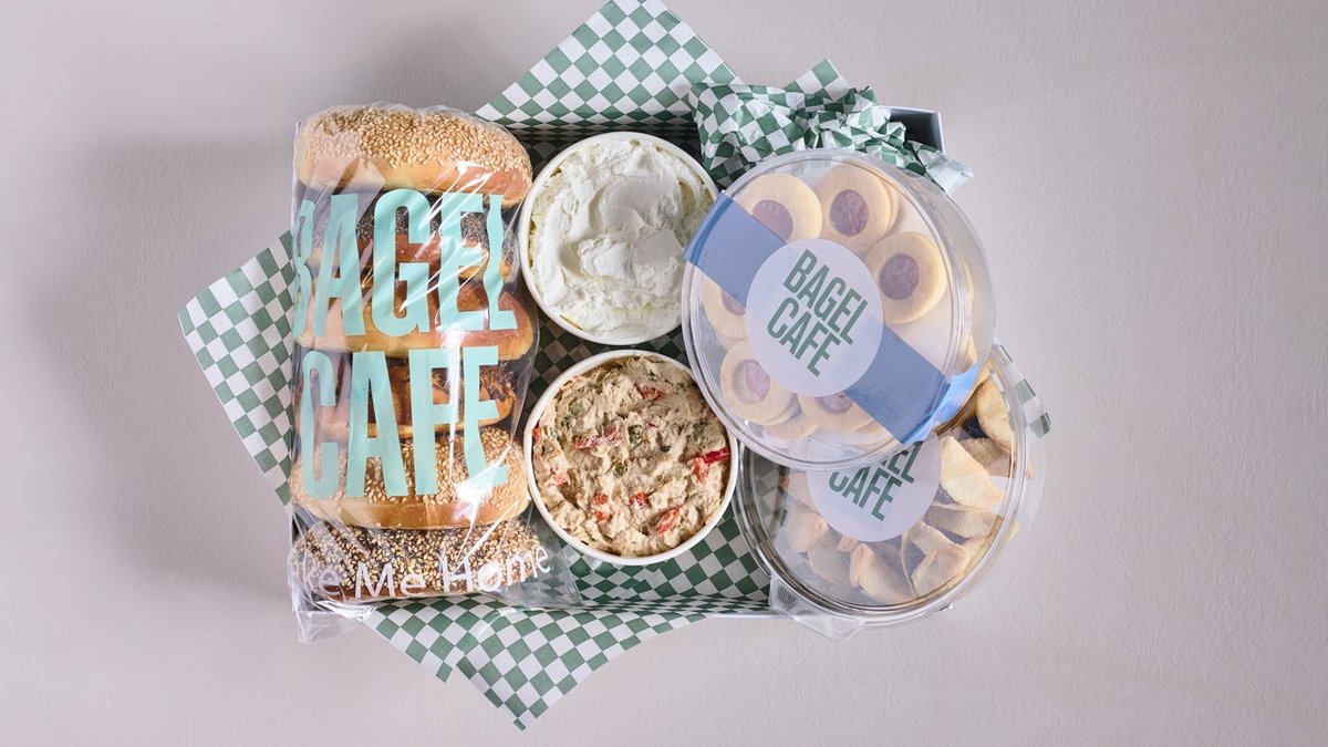 12 בייגל, 3 סוגים של ממרחים או סלטים לבחירה, מארז אלפחורס ומארז עוגיות ריבה