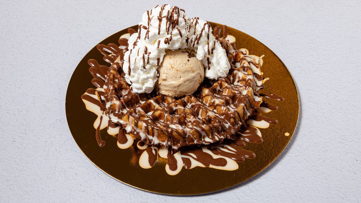 מוגש עם 2 רטבים, כדור גלידה לבחירה וקצפת
