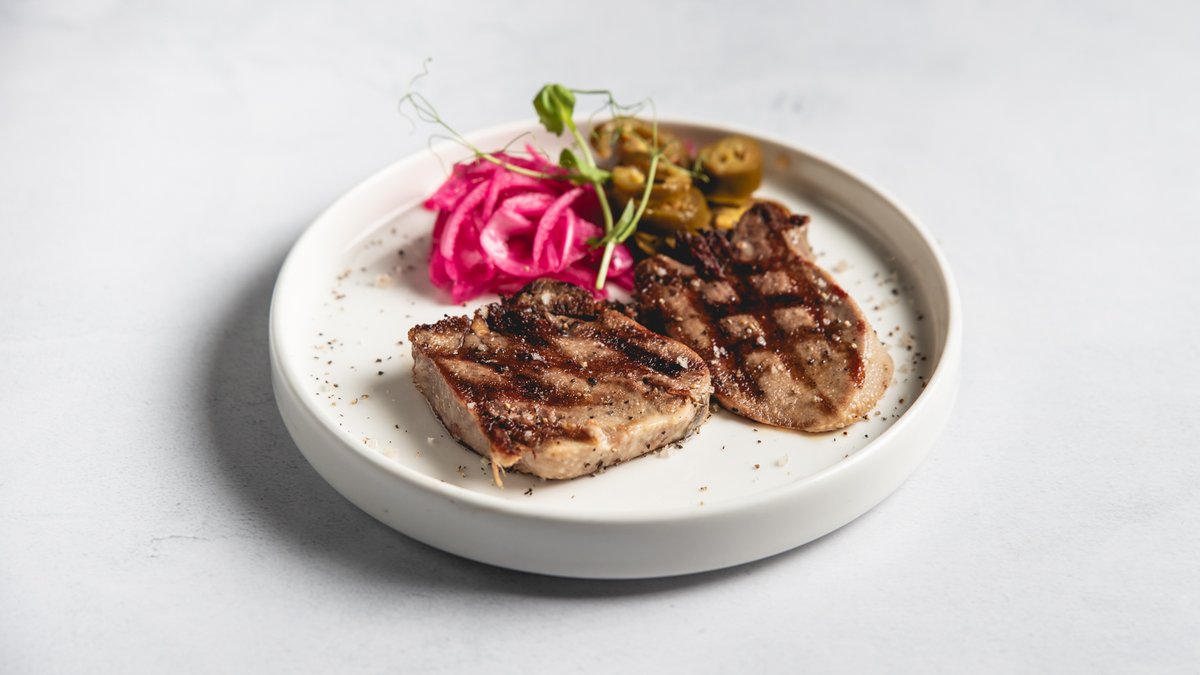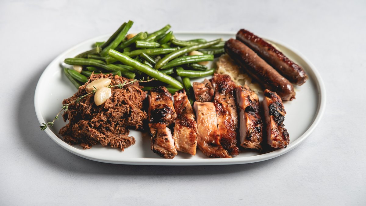 פרגית, בריסקט מפורק ונקניקיית צ'וריסוס אחת | מוגש עם תוספת לבחירה