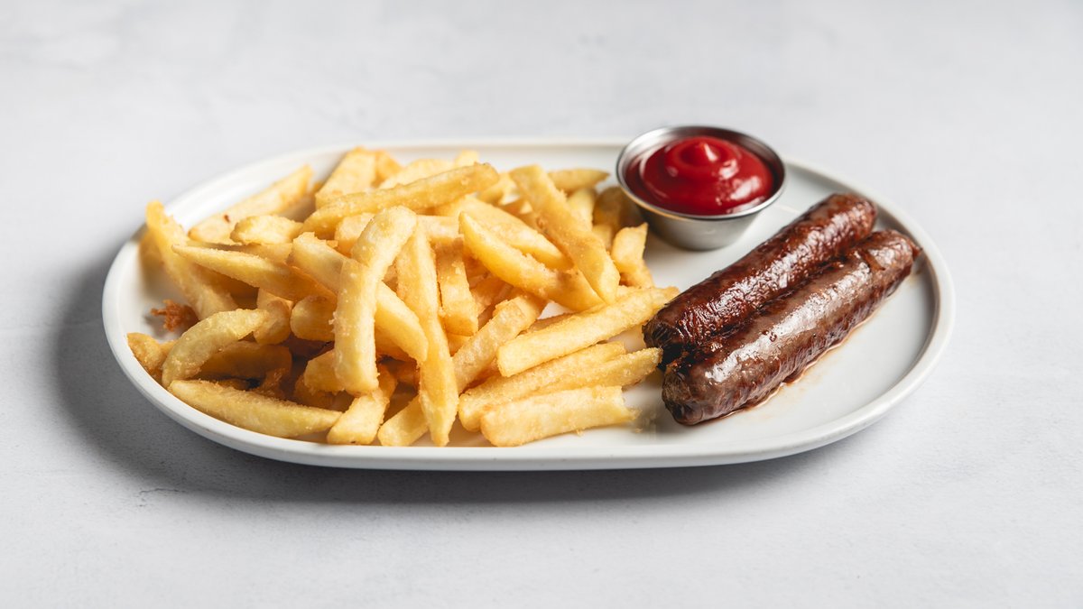 פרגית, בריסקט מפורק 2 נקניקיות צ'וריסוס | מוגש עם 2 תוספות לבחירה