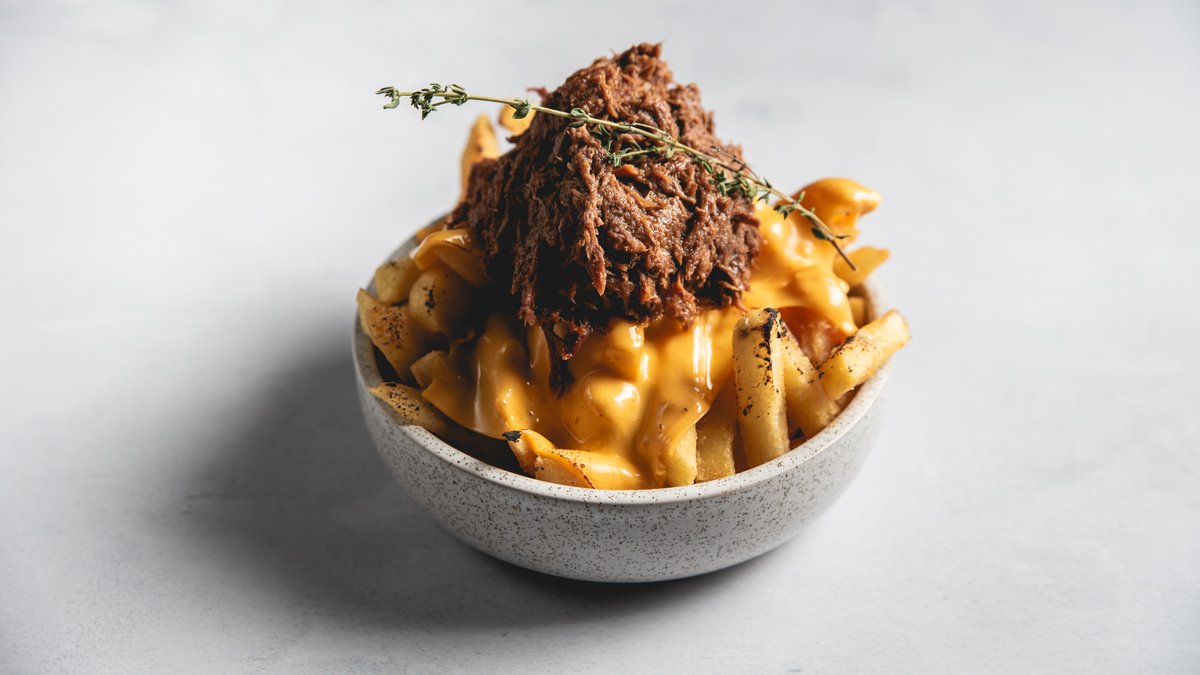 מנת שחיתות מיוחדת - צ׳יפס עם בשר בריקסט מפורק ומעליו גבינת צ׳דר מומסת