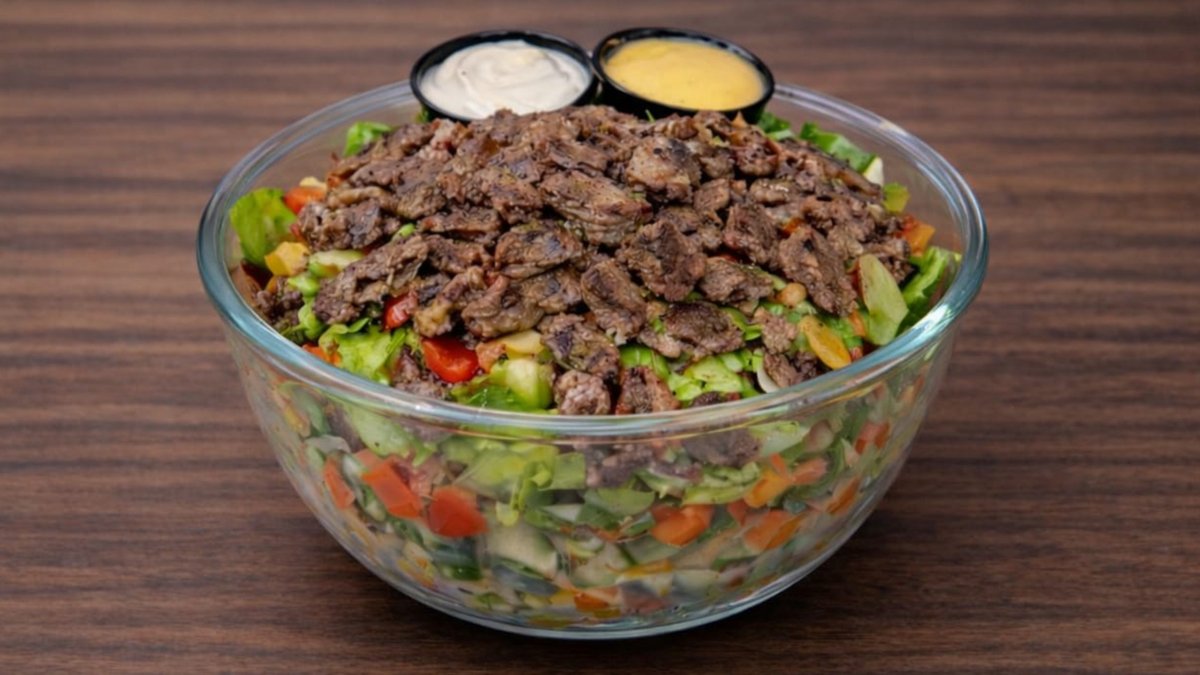 מנה כפולה 300 גר' פילה עוף ואנטריקוט עם סלטים ורטבים לבחירה