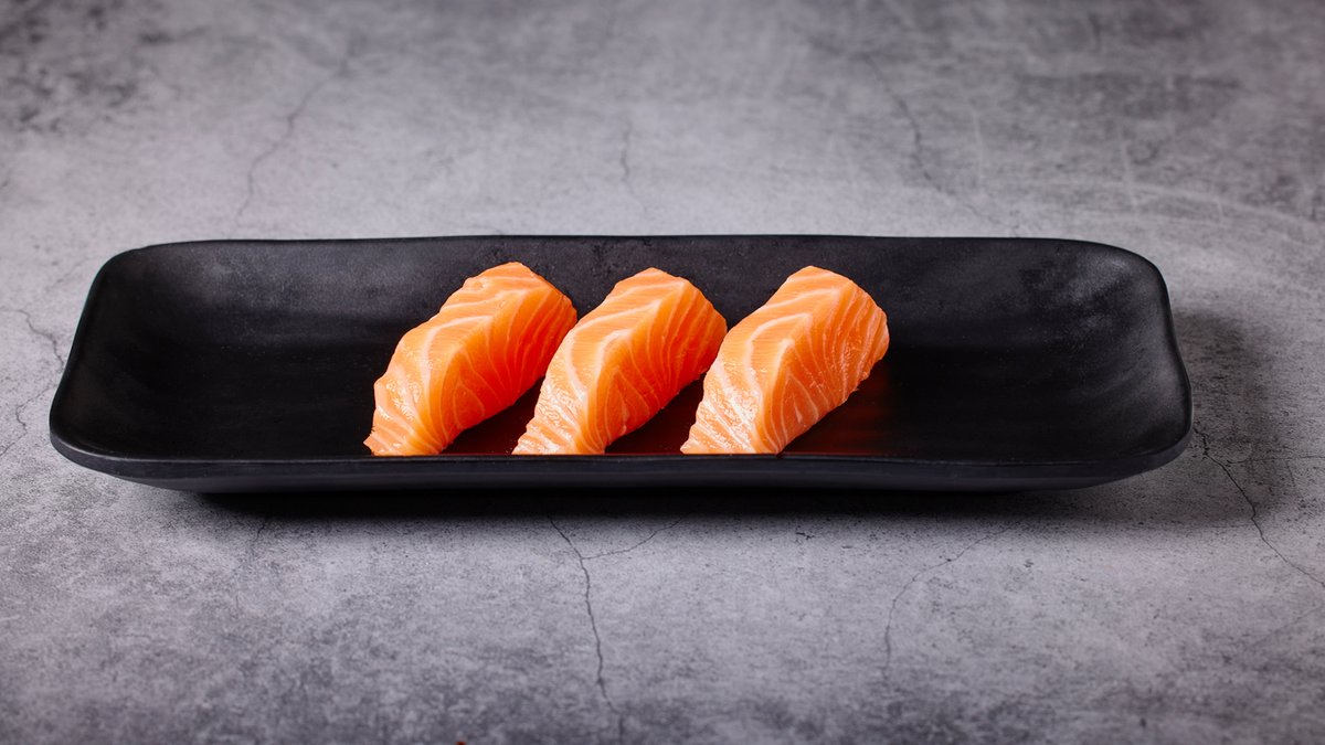 שלוש פרוסות של סלמון נא