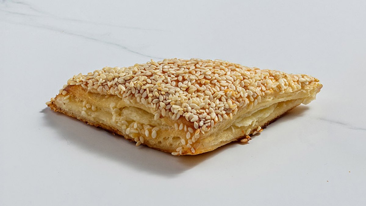 בצק פריך עשיר במילוי רוטב רויאל עם כרישה, גבינת עיזים, יין לבן וגרגירי חרדל