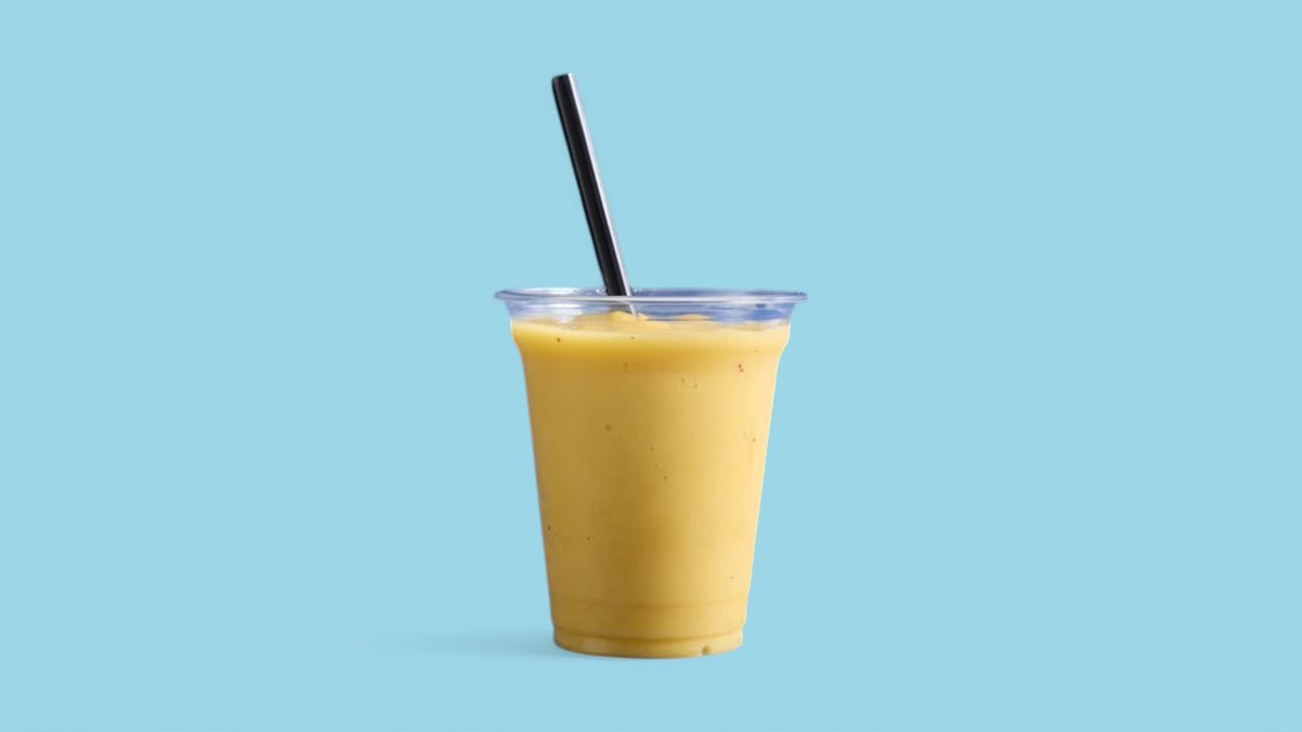 שייק על בסיס מיץ תפוזים עם מנגו, אננס, סורבה פסיפלורה, ויוגורט