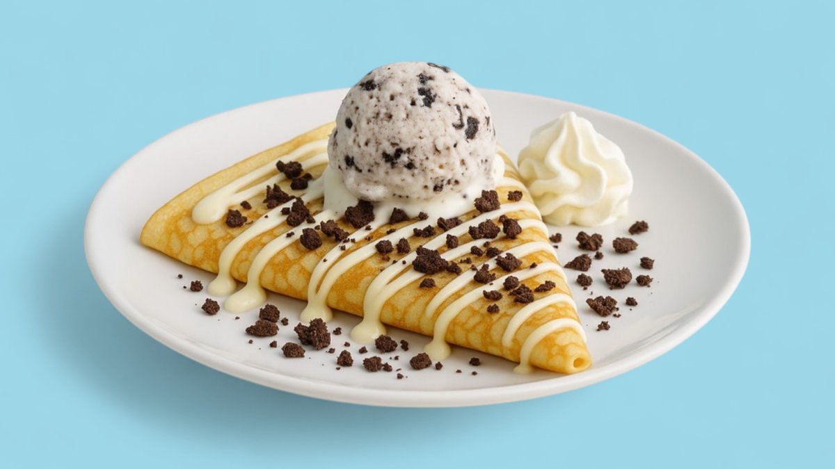 מוגש עם שוקולד לבן, שבבי אוראו, גלידה אוראו וקצפת