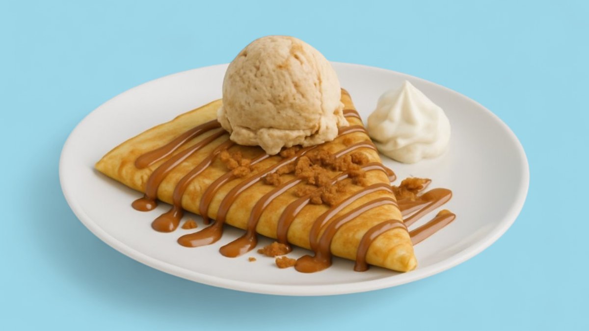 מוגש עם ממרחים לבחירה, כדור גלידה וקצפת