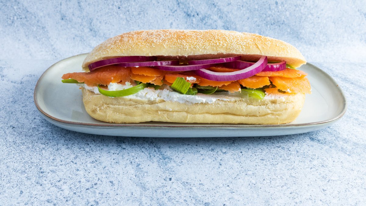 גבינת שמנת , סלמון מעושן , בצל ירוק ובצל סגול