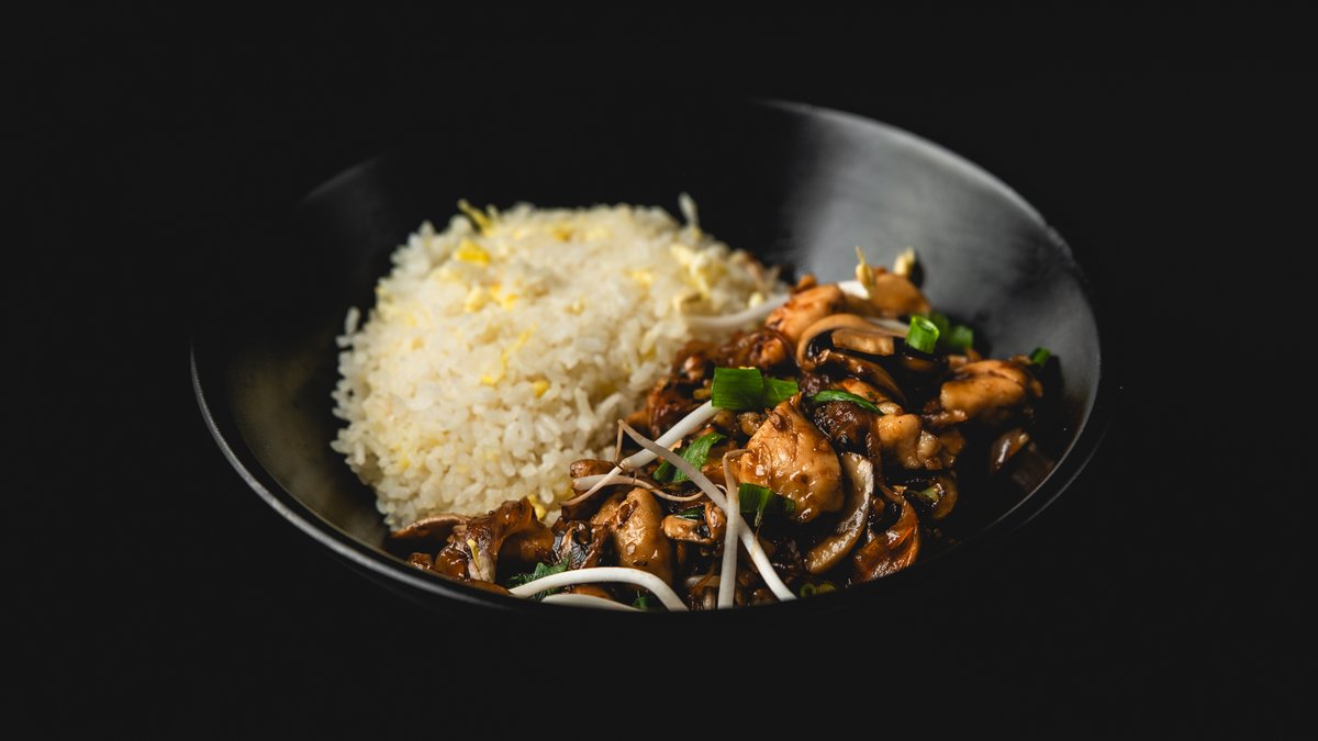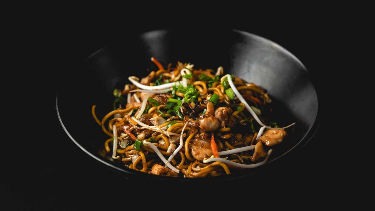 אטריות ביצים מוקפצות עם נתחי עוף ברוטב טריאקי