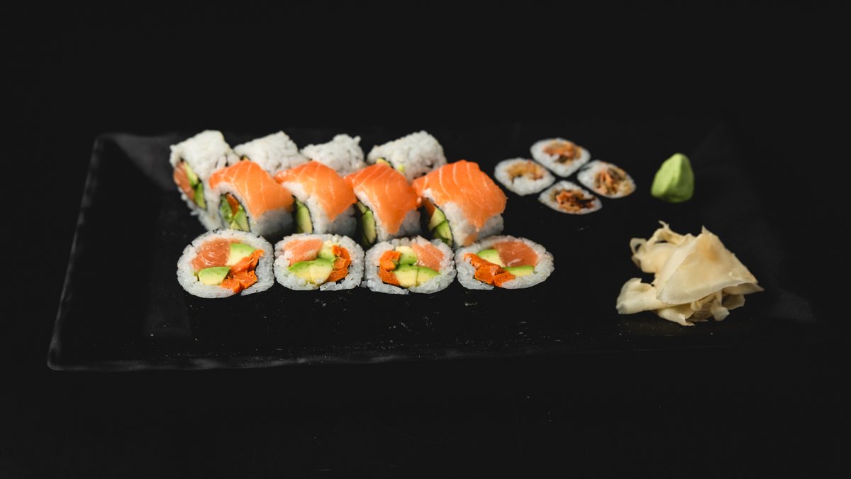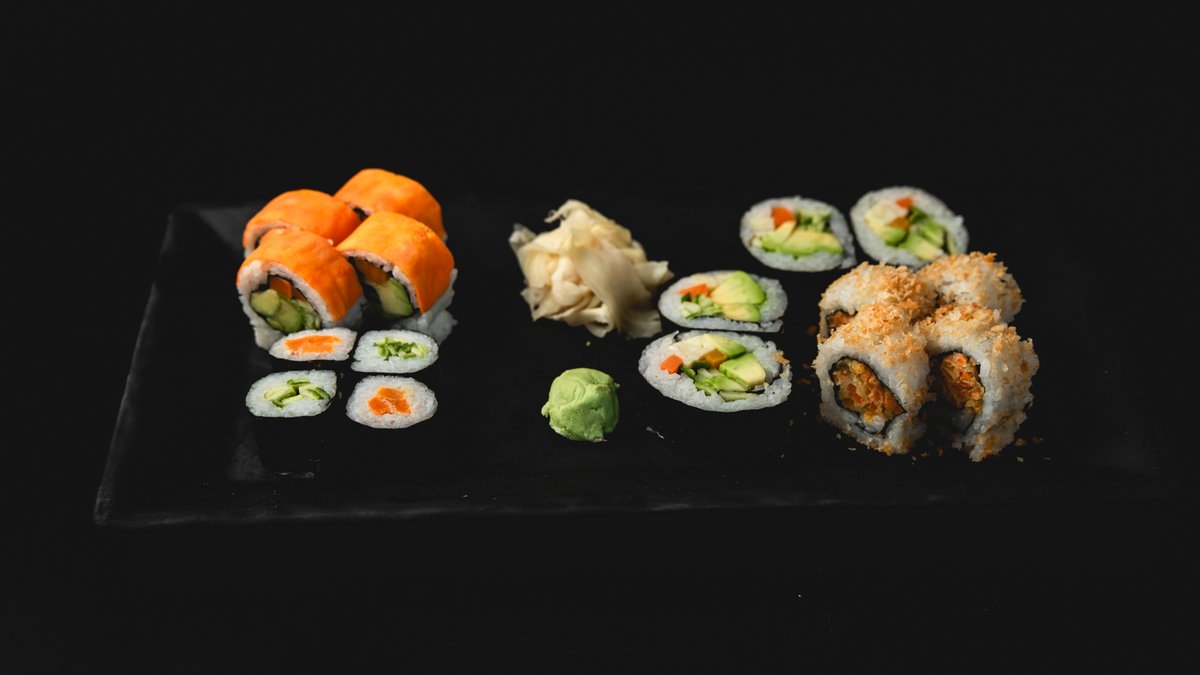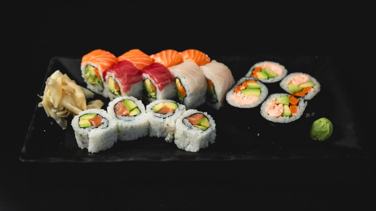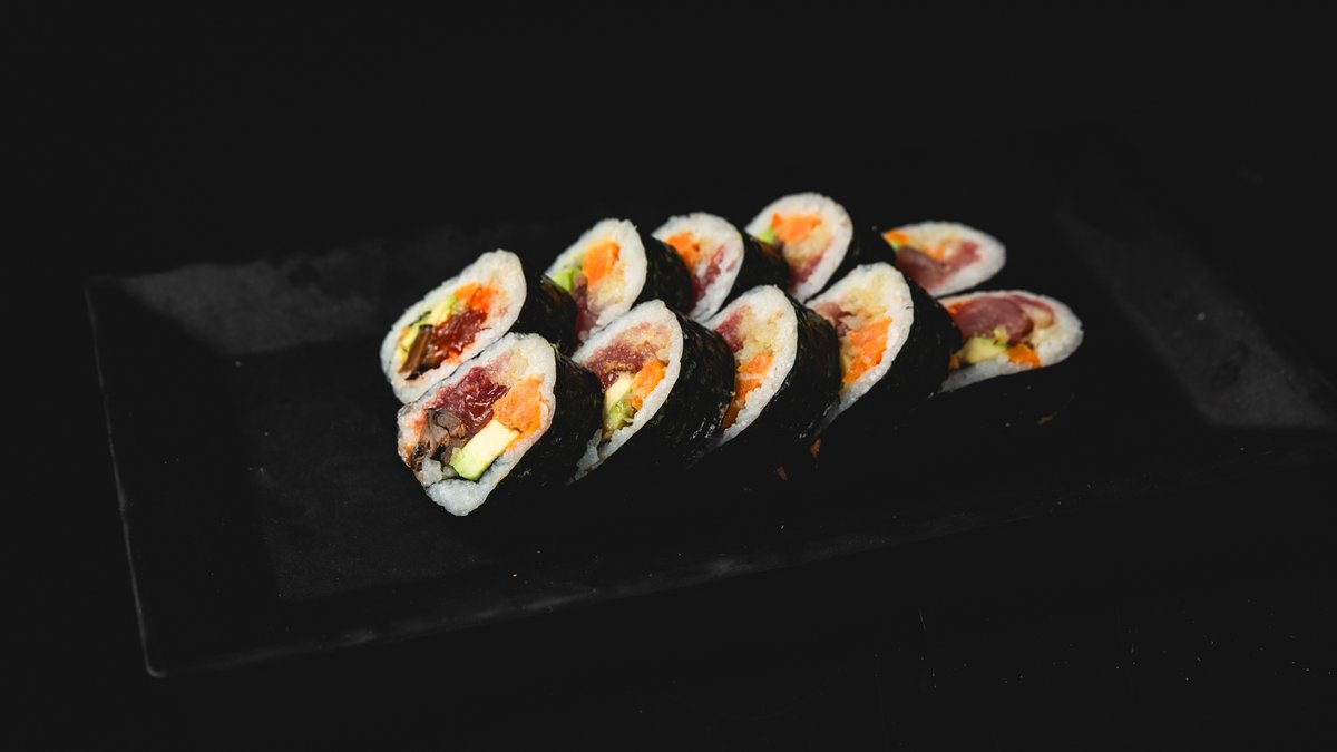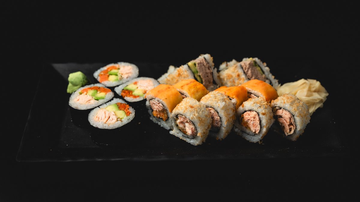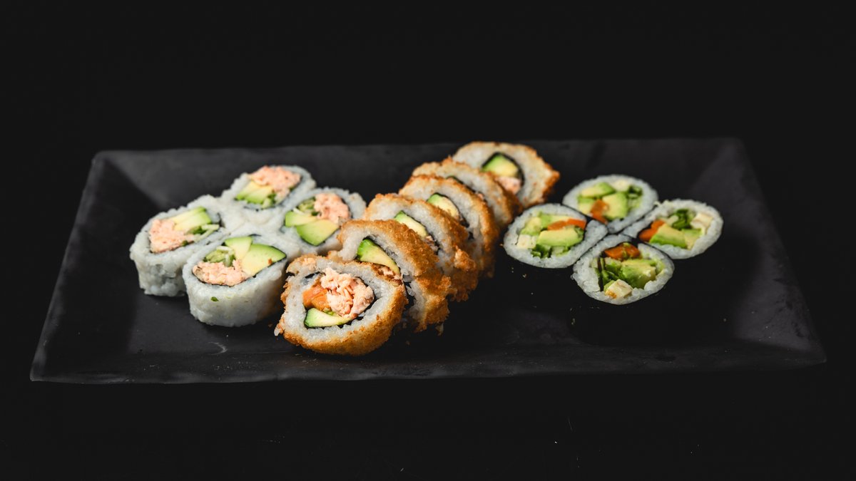 פוטומאקי סלמון וירקות (4 יח'), סלמון ואבוקדו במעטפת בטטה (4 יח'), סלמון בטמפורה וירקות בטמפורה בציפוי שבבי פנקו (4 יח'), פוטומאקי דניס, אבוקדו ובטטה, רול ירקות במעטפת סלמון, טונה אדומה ודניס (8 יח') ו- 4 משולשי סנדוויץ' סלמון ואבוקדו