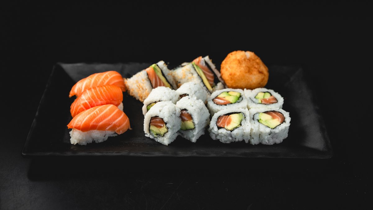 סלמון בטמפורה, אבוקדו ומלפפון במעטפת בטטה (4 יח'), סלמון בטמפורה, ירקות בטמפורה בציפוי שבבי טמפורה (4 יח'), פוטומאקי סלמון בטמפורה וירקות (4 יח') ו- 2 משולשי סנדוויץ' במילוי טונה מיונז ואבוקדו