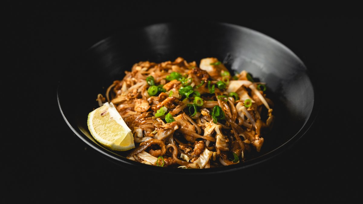 אטריות אורז, ביצה, כרוב, בצלים ונבטים ברוטב תאילנדי מסורתי | מוגש עם בוטנים