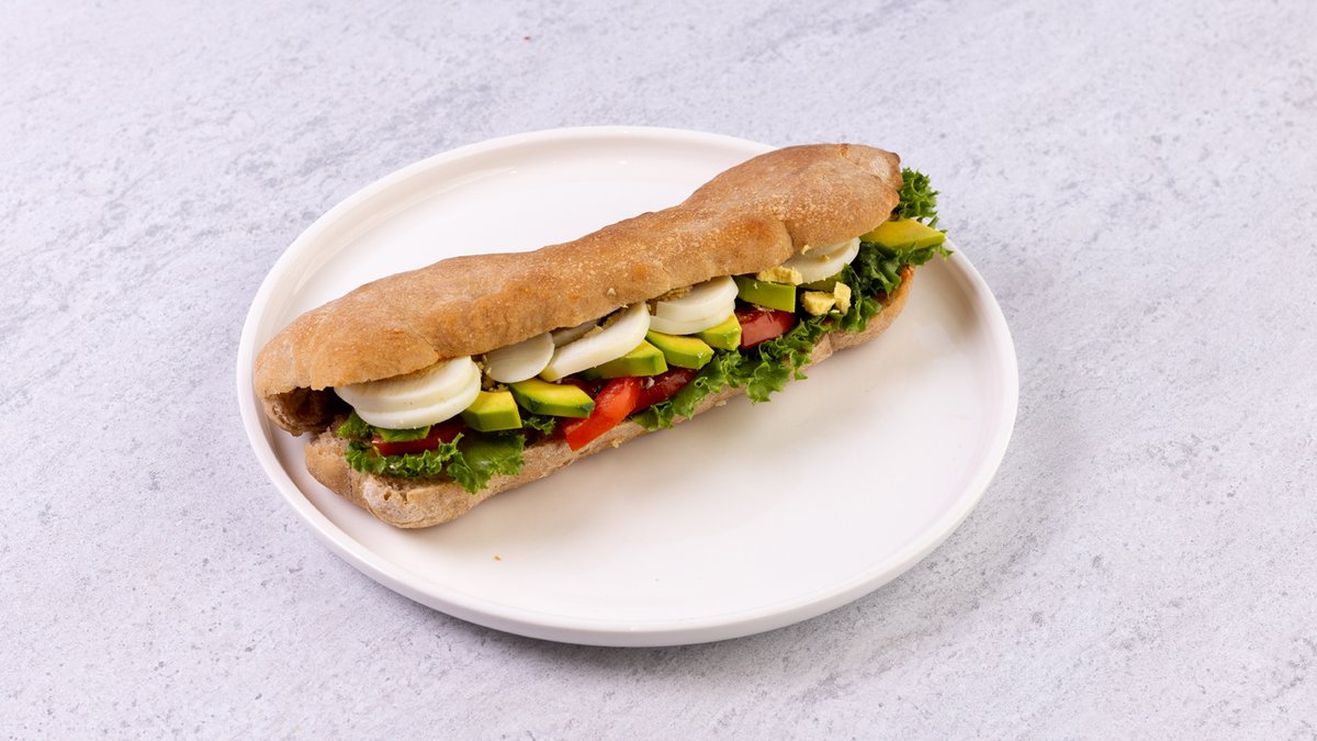 גואקמולי אבוקדו ,גבינת שמנת, רוטב פסטו, עגבנייה, חסה וביצה קשה
