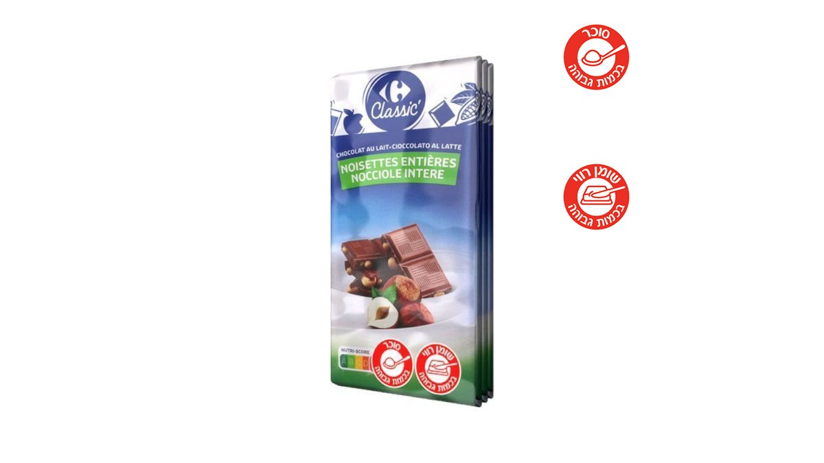 שוקולד חלב מעולה עם אגוזי לוז שלמים קרפור 3*100 גרם