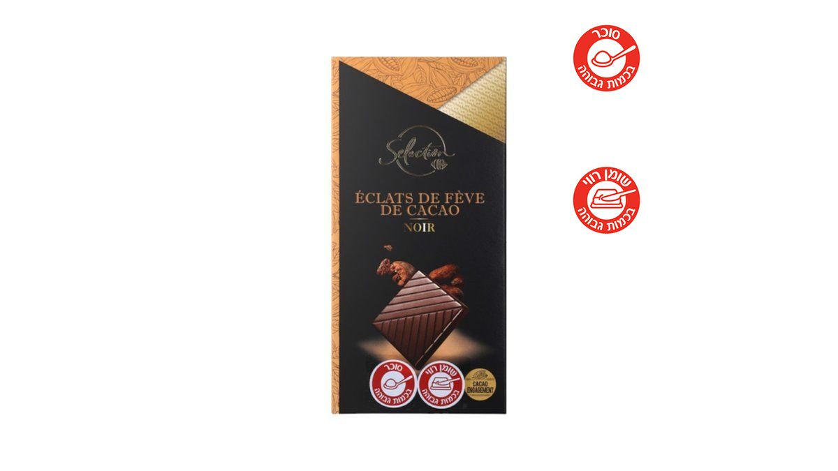 שוקולד מריר מעולה עם שברי פולי קקאו קלויים ומקורמלים קרפור 100 גרם