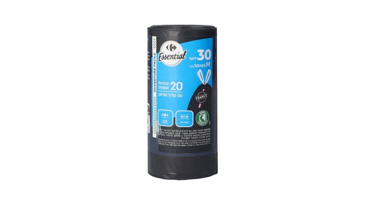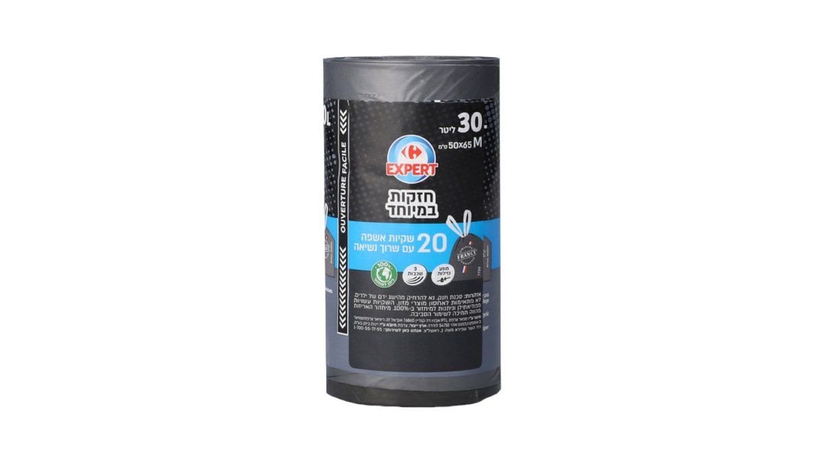 קרפור אקספרט 20 שקיות אשפה 30 ליטר חזקות במיוחד עם שרוכים נמתחים 100% ניתנות למיחזור