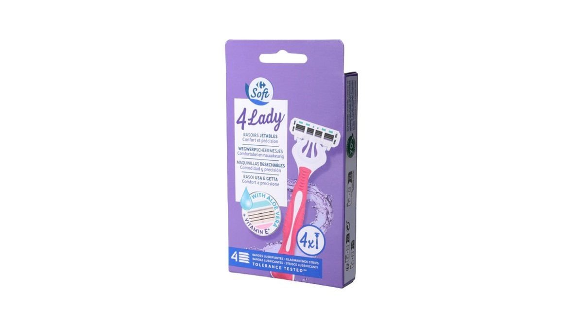 קרפור סופט 4 ליידי מארז 4 מכשירי גילוח חד פעמיים, נוחות ודיוק מועשר באלוורה וויטמין E