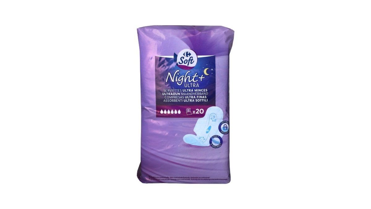 קרפור סופט תחבושות היגייניות לילה + אולטרה דקות עם כנפיים מארז 20 יח
