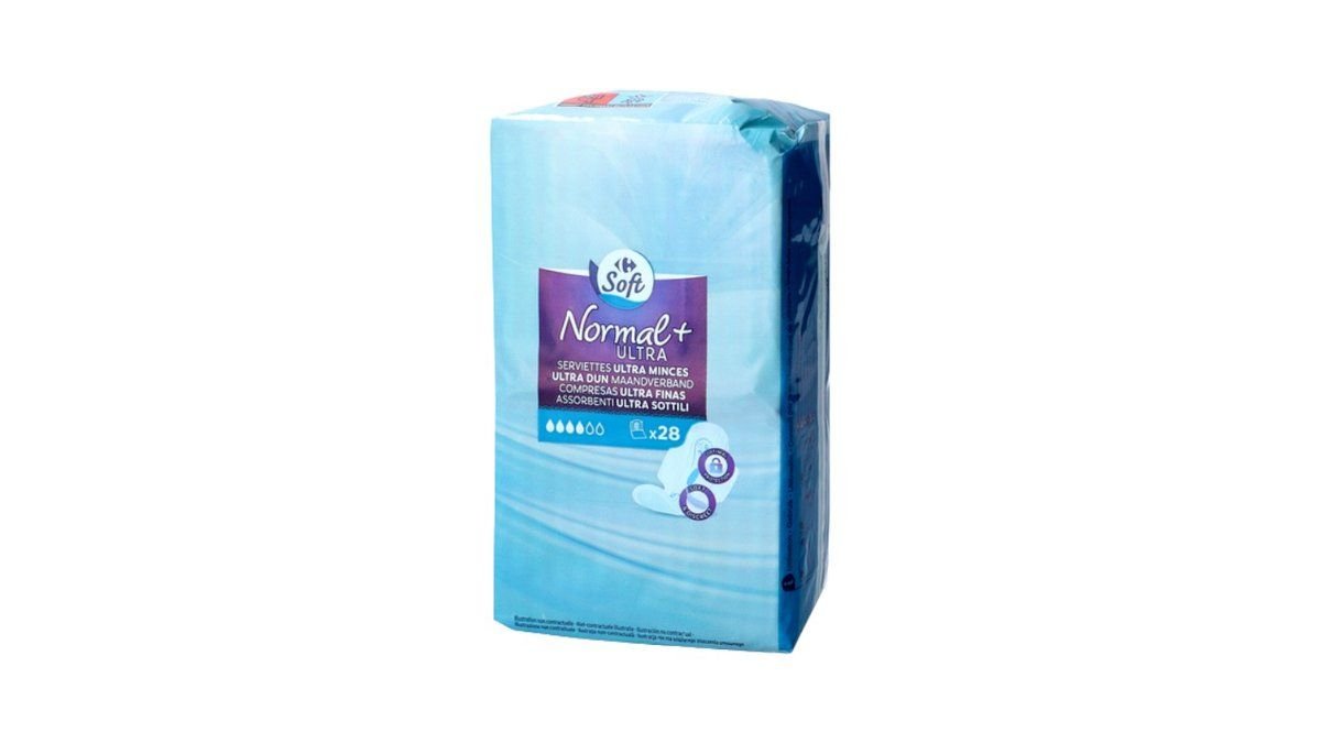 קרפור סופט תחבושות היגייניות עם כנפיים אולטרה דקות נורמל פלוס אריזת דואו פלוס 28 יח׳