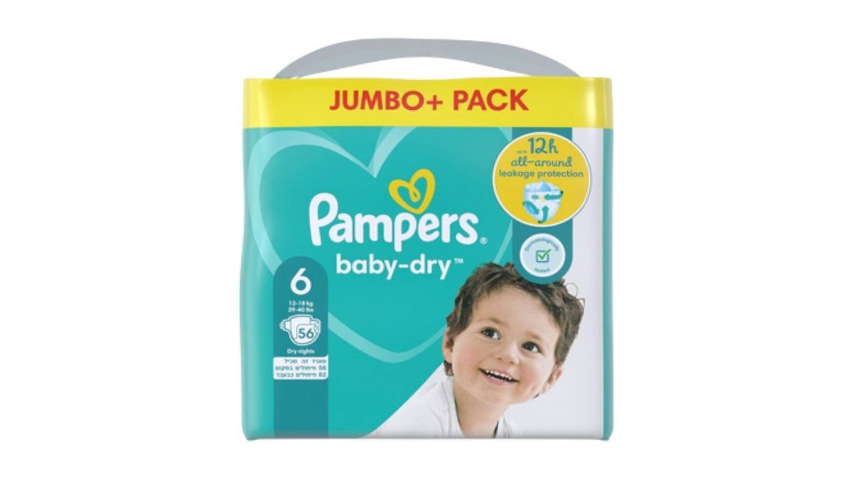 פמפרס בייבי דריי אריזת ענק מידה 6, 56 יח