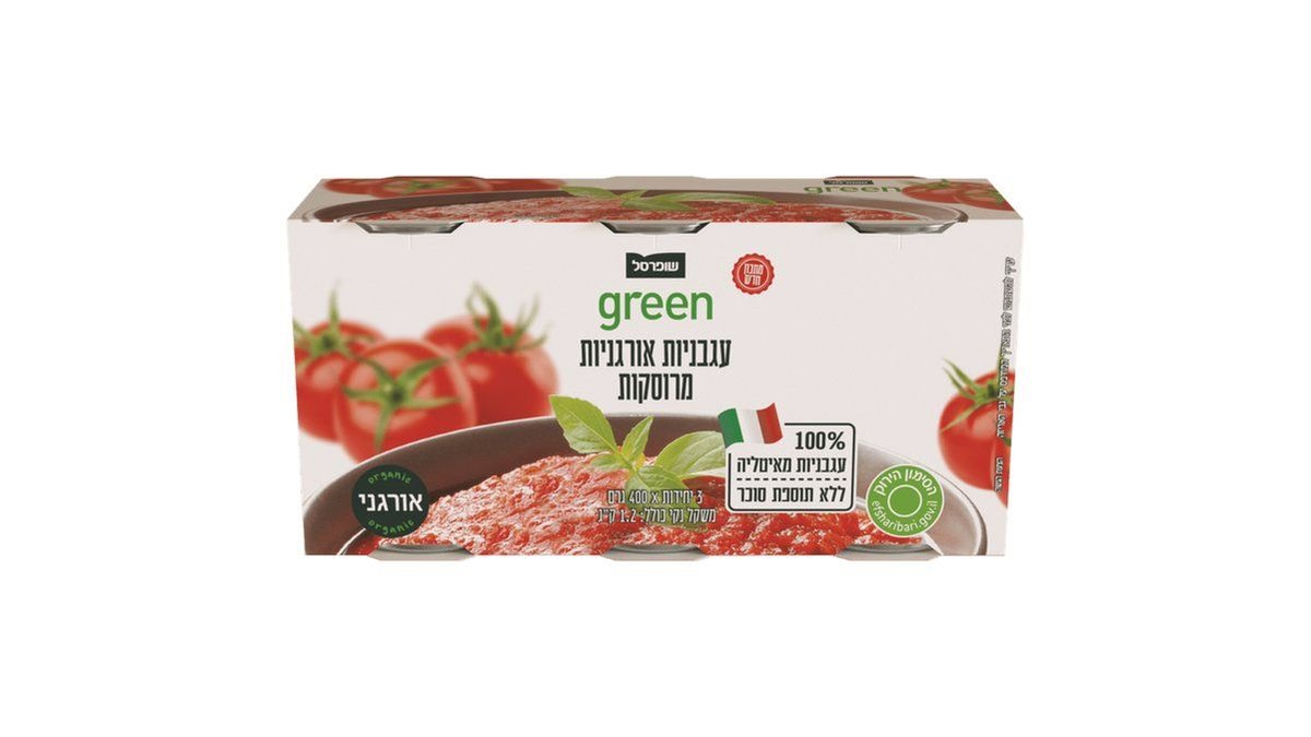 עגבניות אורגניות מרוסקות 1.2 ק״ג שופרסל