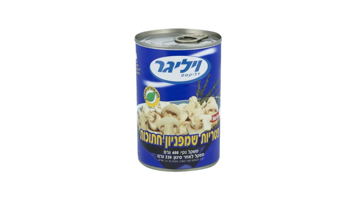 ויליגר פטריות שמפיניון שלמות 400 גרם לאחר סינון 230 גרם