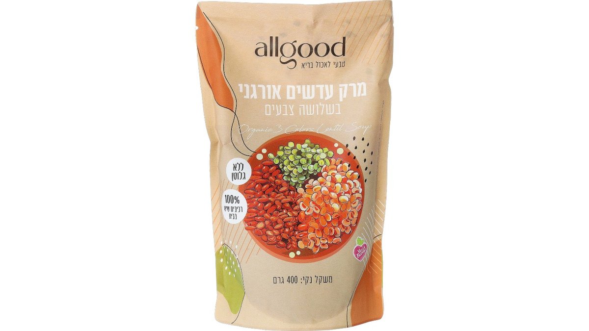 allgood מרק עדשים 3 צבעים אורגני 400