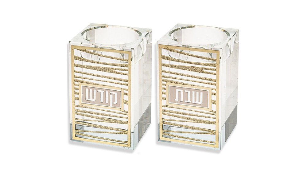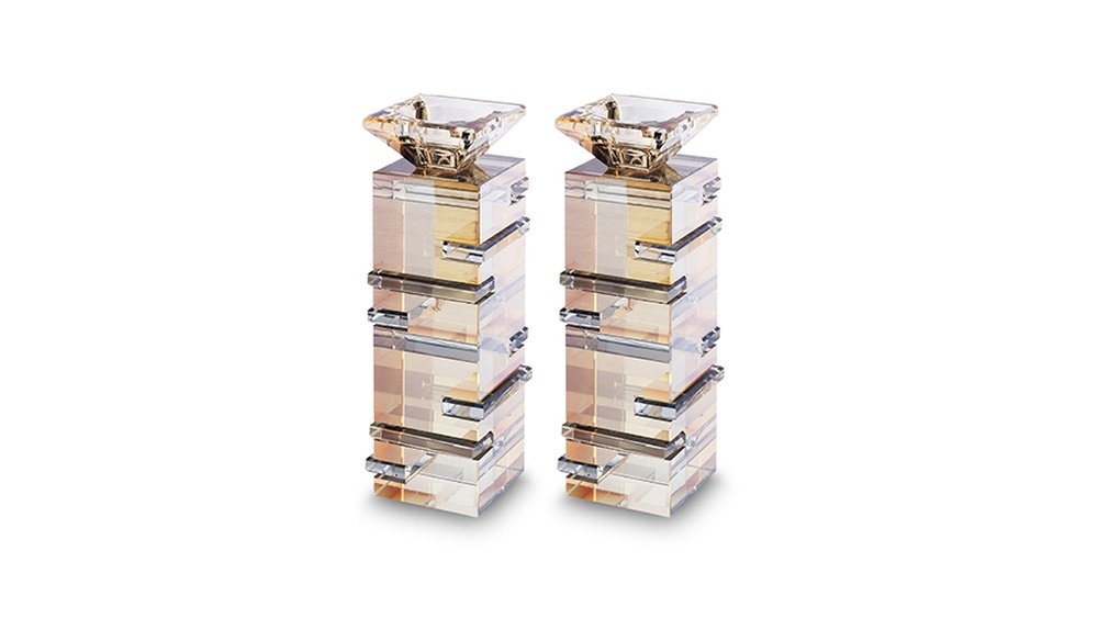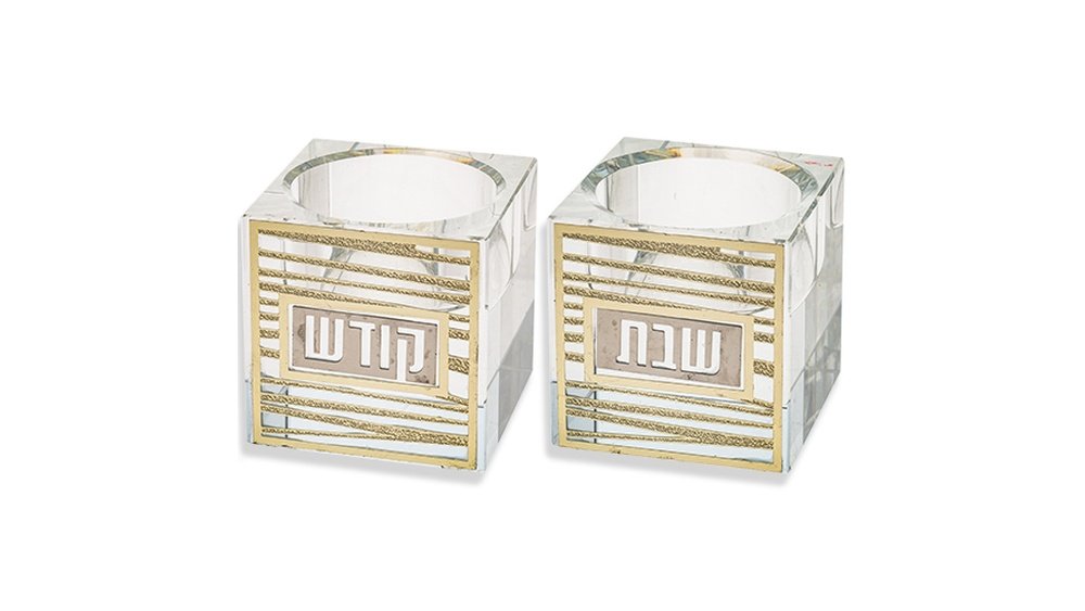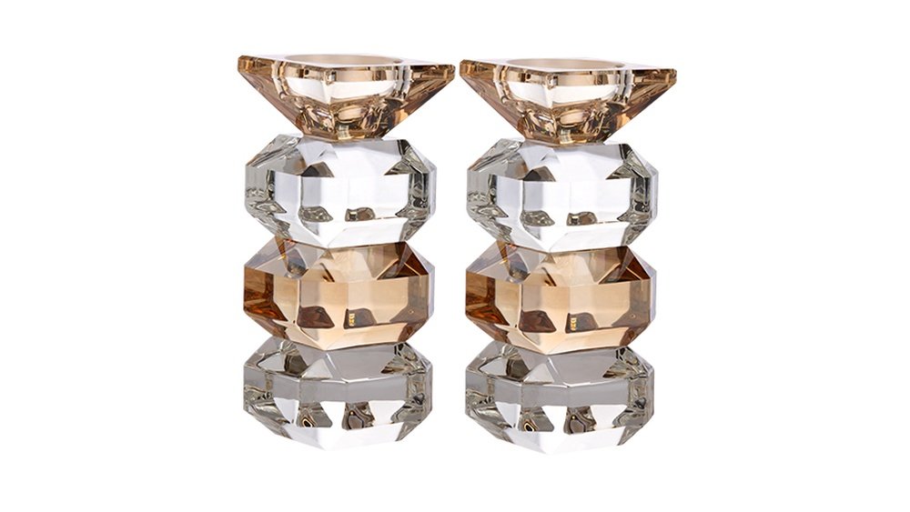 זוג פמוטי קריסטל מרובע זהב עם פלקטה הדלקת נרות 8 ס"מ