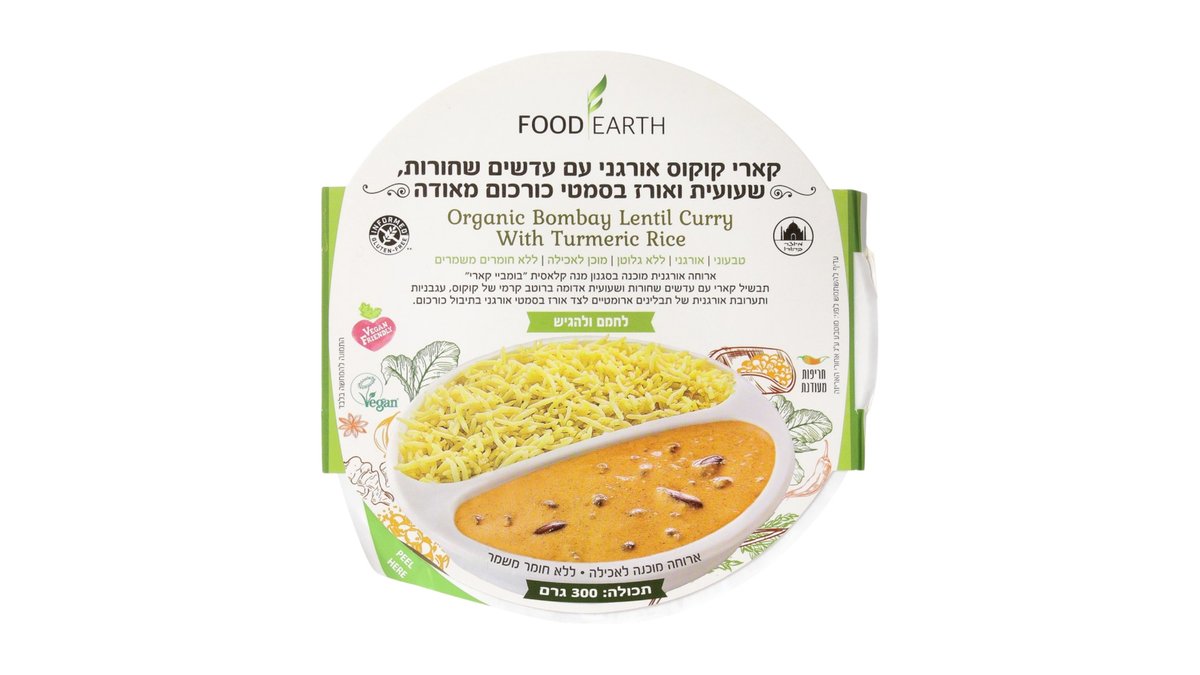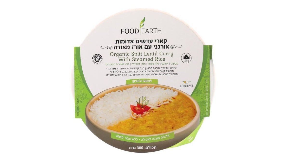 ארוחת קארי עדשים אדומות עם אורז מאודה אורגני צ'אנה מסאלה
