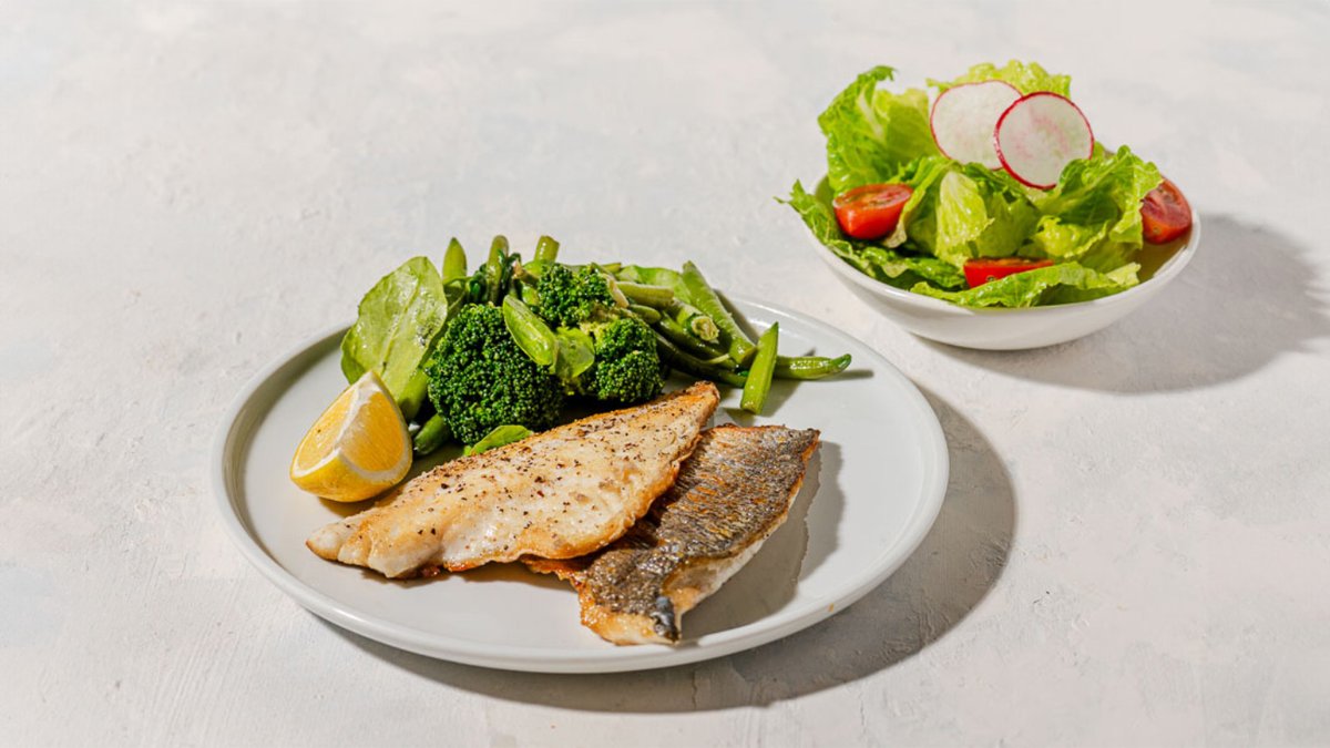 שני פילטים של דניס צלויים עם סלט ירוק ותוספת