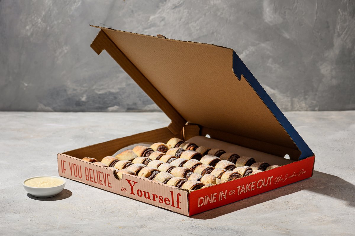 בצק שמרים ממולא בממרח שוקולד עם אבקת סוכר. נאפה במקום בתנור לבנים רוזלך אוכלים חם! 🔥 חממו דקה וחצי בתנור חם ב-180 מעלות