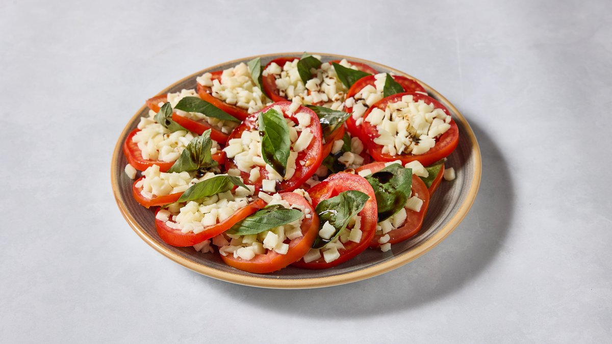 עגבניות, גבינת מוצרלה, בזיליקום, שמן זית, חומץ בלסמי מיושן
