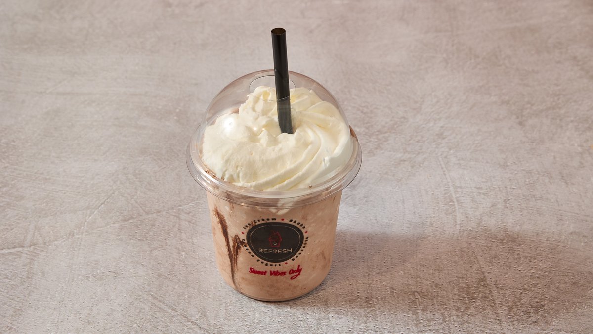 עם קצפת, פירות ורטבים לבחירה מוגש עם 3 גביעים, כוסות וכפיות