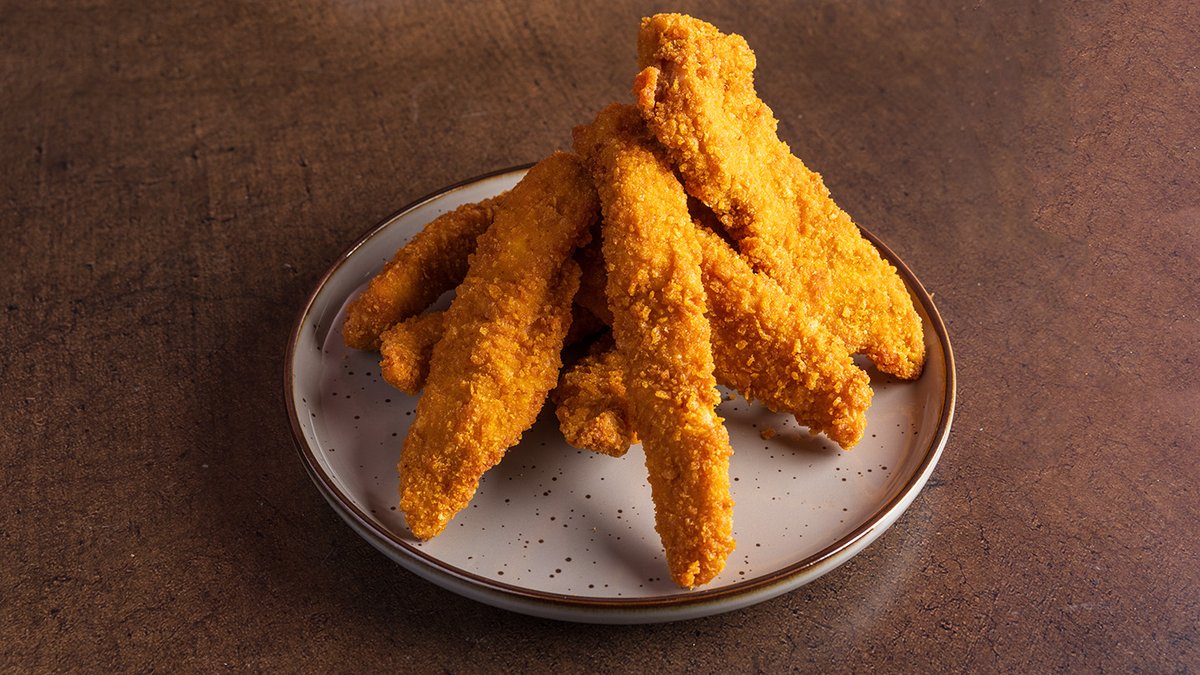 נתחי עוף בציפוי קראסט קריספי מוגש עם רטבים לבחירה