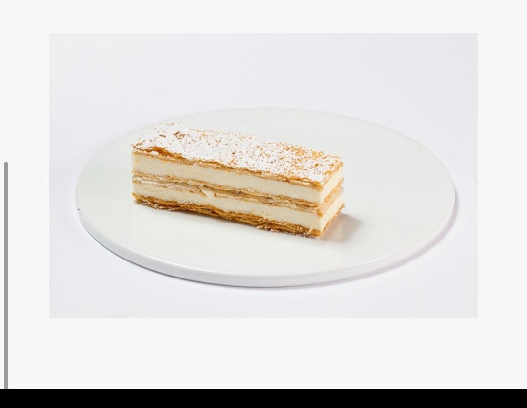 מקורמל משולבים בקרם פטיסייר בעיטור אבקת סוכר.