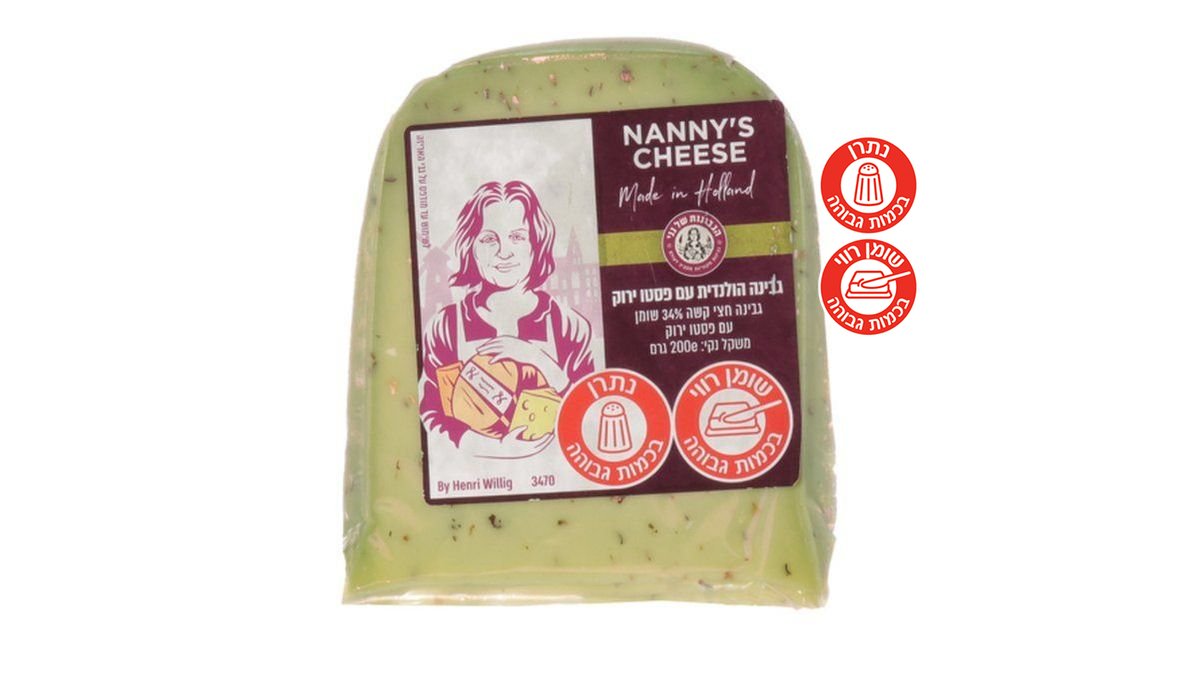 גבינה חצי קשה 31% שומן מסוג גאודה עם פסטו ירוק