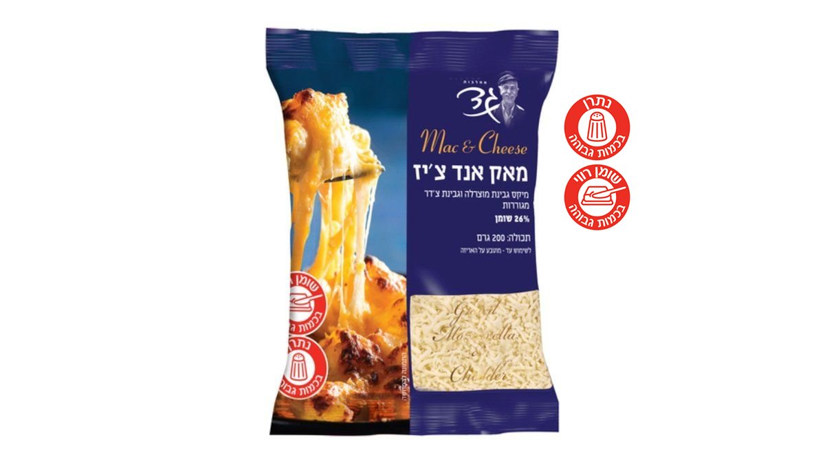 מק אנד צ׳יז מוצרלה וצ׳דר מגורדות גד 26% - 200 גרם