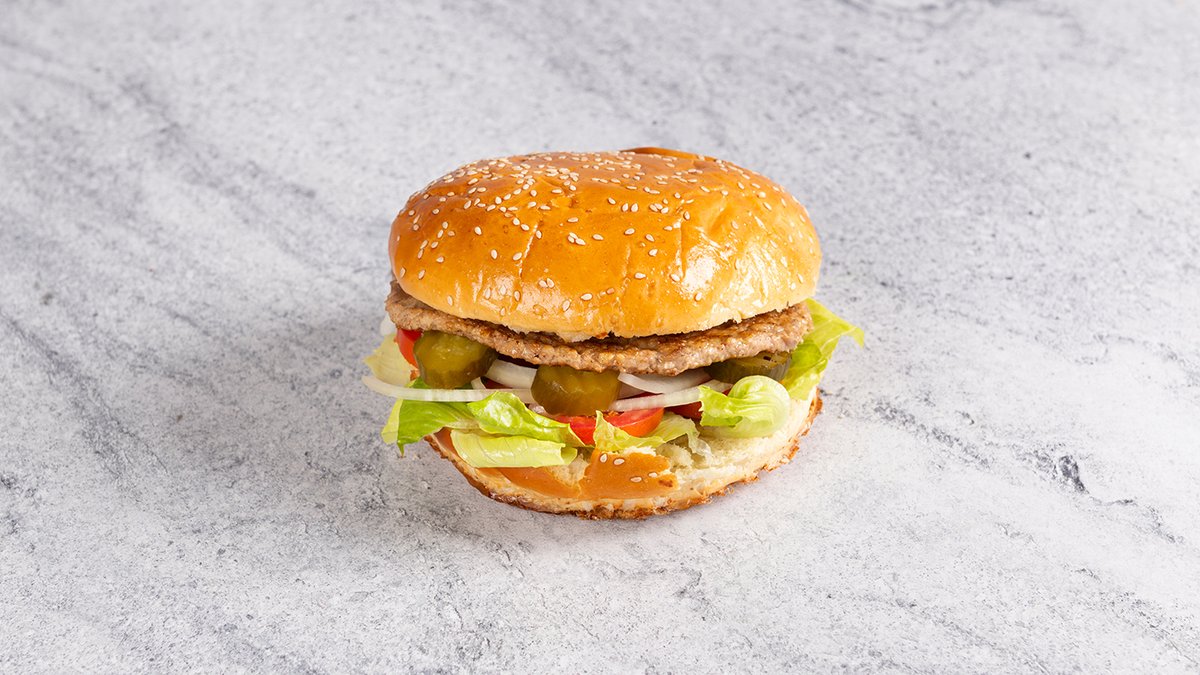 100 גרם קציצה בלחמניית עם המבורגר עם ירקות לבחירה