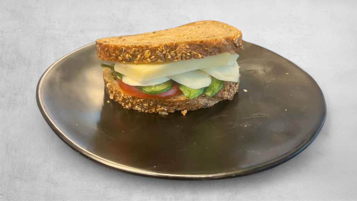גבינת שמנת, חביתה, עגבנייה, חסה לליק, מלפפון ומלפפון חמוץ